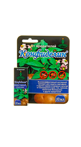 Конфиделин — инсектицид контактного действия, быстро и эффективно уничтожающий вредителей картофеля, помидор и огурцов и других культур. Препарат предназначен для борьбы с колорадским жуком, тепличной белокрылкой, табачным трипсом и тлей.