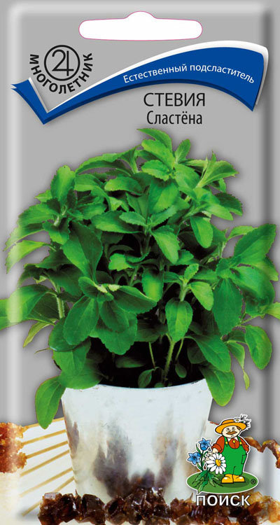 Стевия, или двулистник сладкий (Stevia rebaudiana Вertoni) – теплолюбивый полукустарник, который может выращиваться в горшечной культуре или в открытом грунте. В стевии содержится много антиоксидантов, минеральных веществ – кальция, фосфора, калия, цинка, хрома, магния, селена, меди, витаминов группы А, В, С, Е, а также дубильные вещества, эфирные масла. Регулярное употребление стевии оказывает всестороннее положительное действие на организм человека: – нормализуется уровень глюкозы в крови
